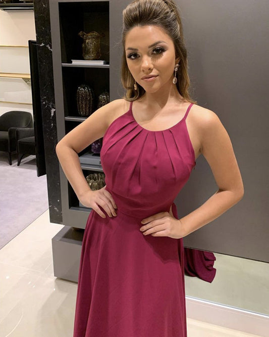 Ruched Top Long Chiffon Halter Bridesmaid Dresses