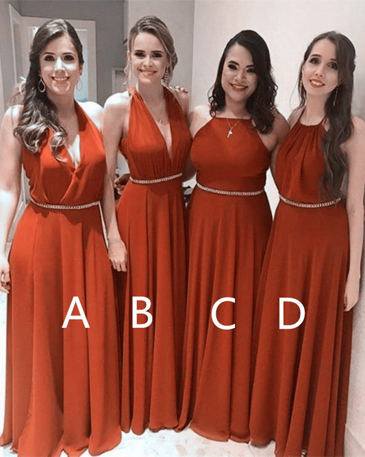 Rust Bridesmaid Dresses Long Chiffon Mismatched