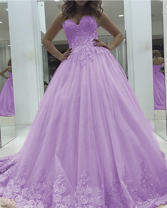 Lace Sweetheart Ball Gown Tulle Prom Dresses Elegant