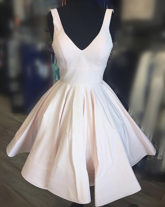 Short Ball Gown Homecoming Dresses Satin V Neck