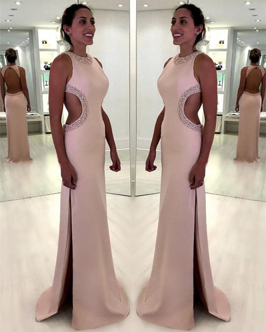 Elegant Lace Appliques Bridesmaid Dresses Nude Back