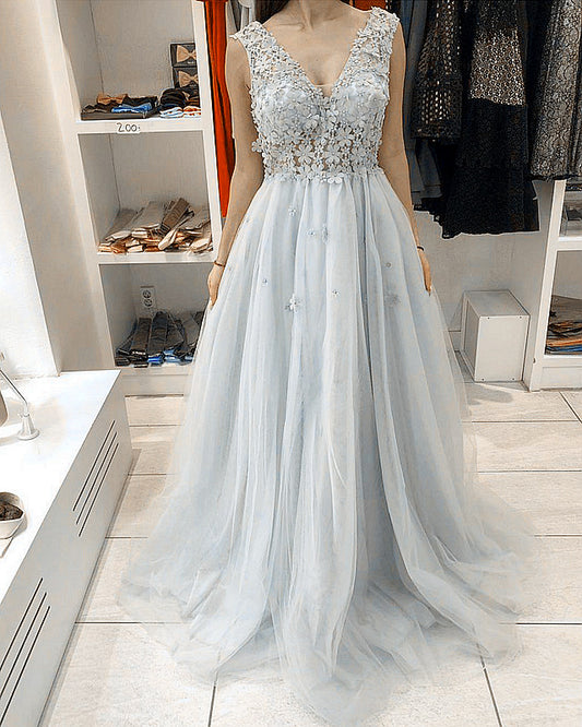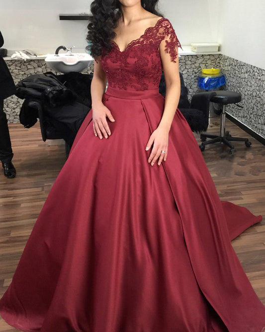Elegant Prom Ball Gown Dresses Lace V Neck
