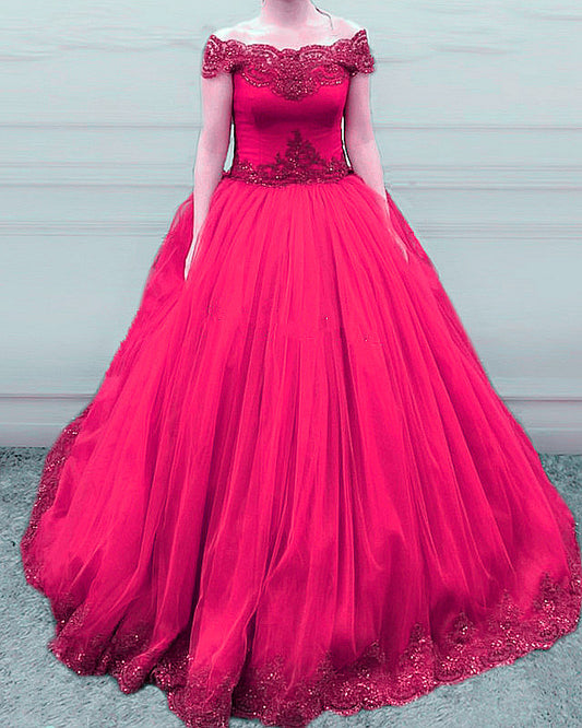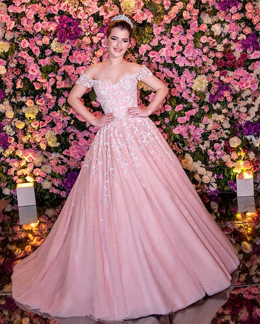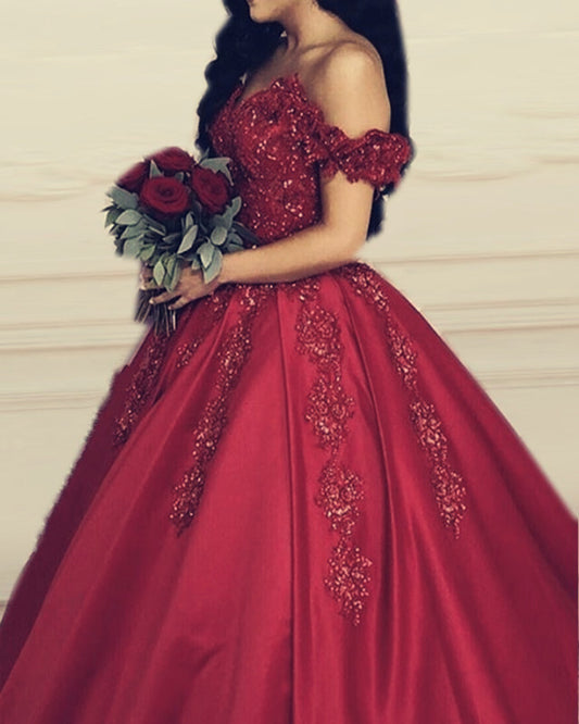 Elegant Quinceanera Ball Gown Lace Appliques Off The Shoulder Dresses