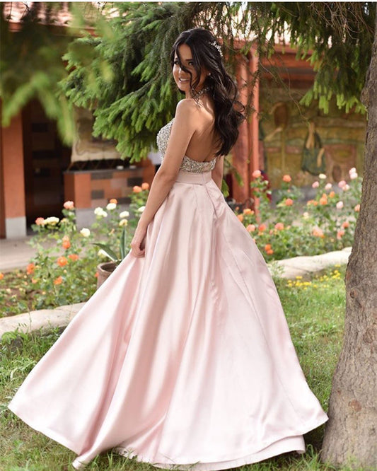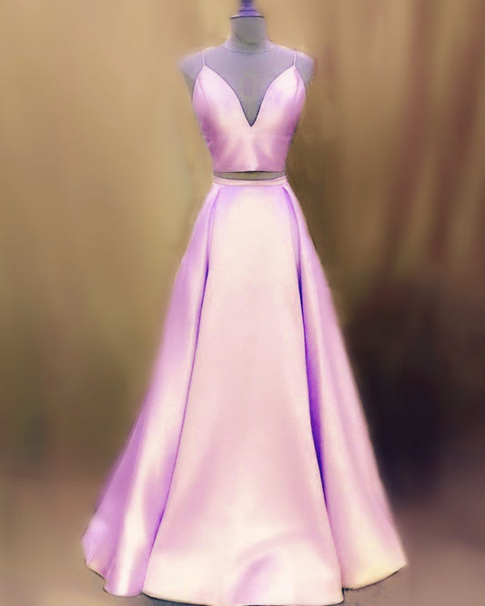 Two Piece Prom Dresses Satin Bow Back