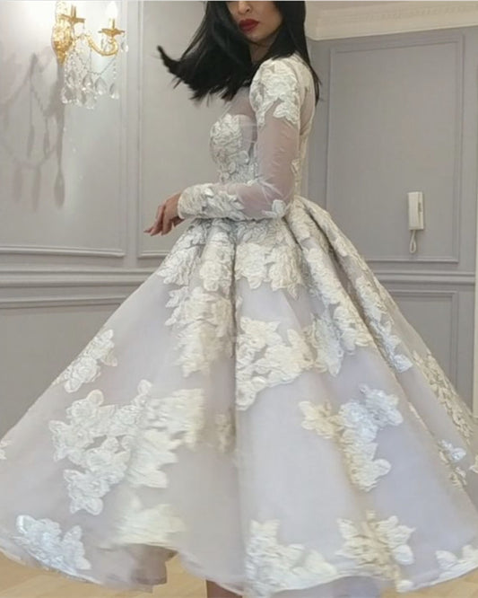 Ivory Ball Gown Lace Long Sleeves Dresses
