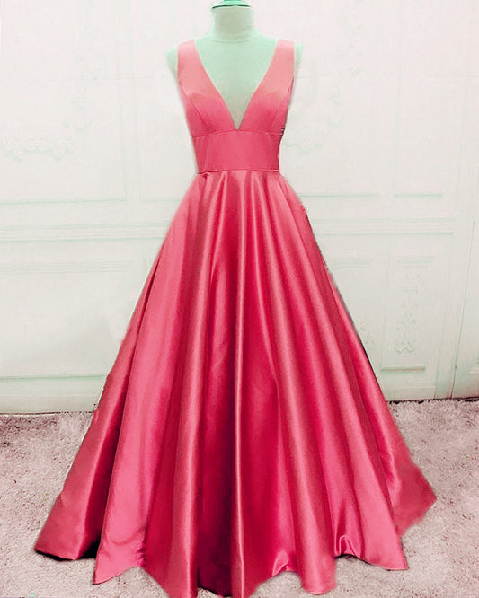 Simple Prom Satin V Neck Dresses Ball Gown