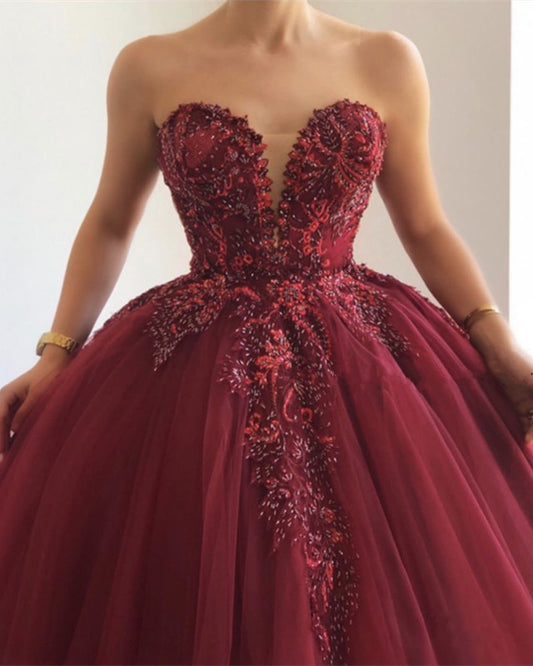 Lace Appliques Ball Gown Quinceanera Dresses Tulle Flowers