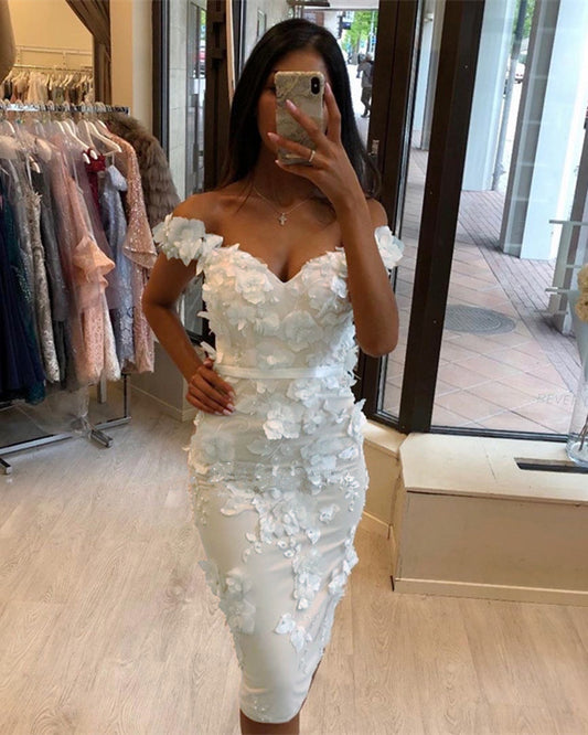 Sheath Homecoming Dresses Off Shoulder 3D Lace Embroidery