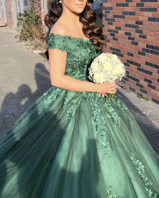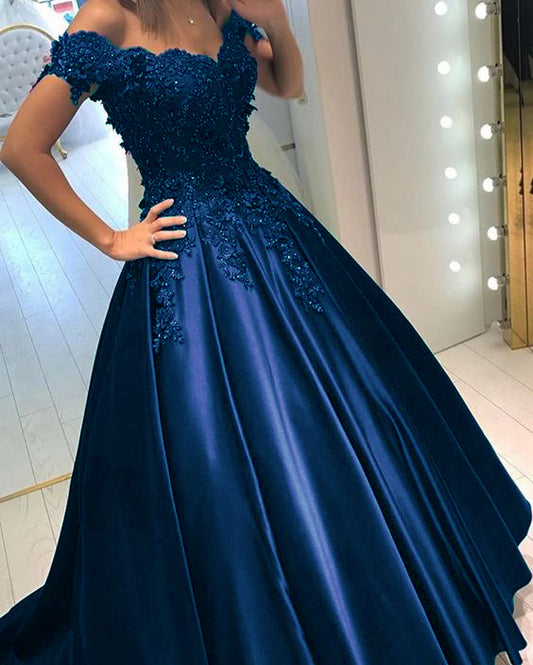 Off The Shoulder Prom Dresses Tulle Lace Appliques
