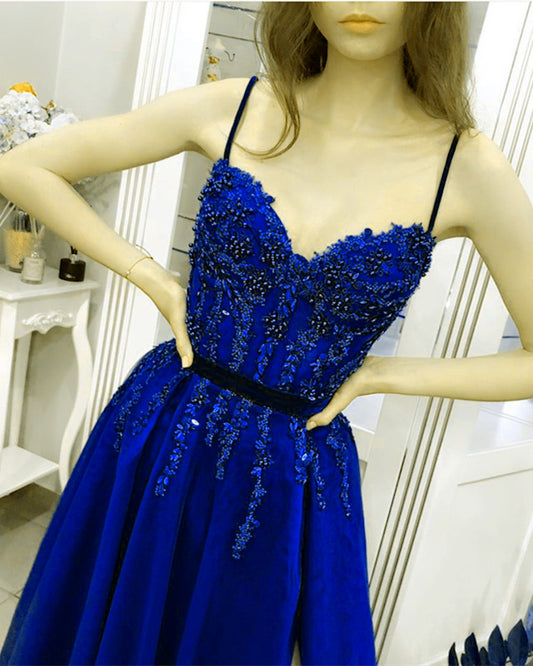 Tulle Split Prom Dresses Sweetheart Spaghetti Straps Lace Beaded