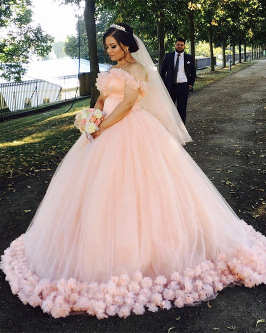 Tulle Flowers Wedding Dresses Off The Shoulder