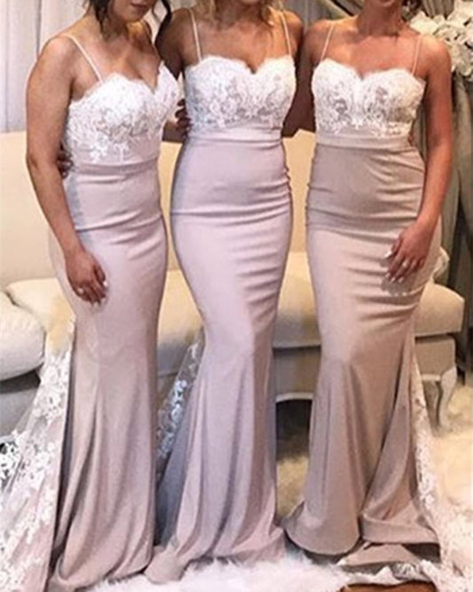 Spaghetti Straps Bridesmaid Dresses Mermaid Sweetheart Lace Train