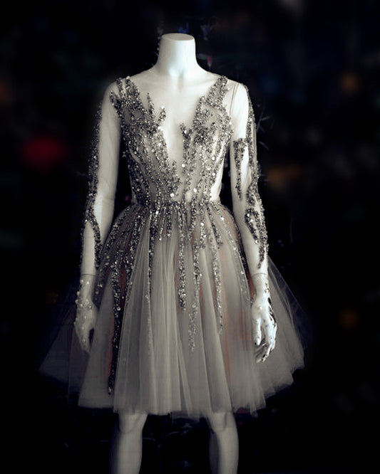 Tulle Long Sleeves Homecoming Dresses Sequins Beaded