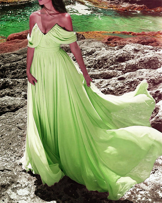 Crinkle Chiffon Bridesmaid Dresses Long Off The Shoulder