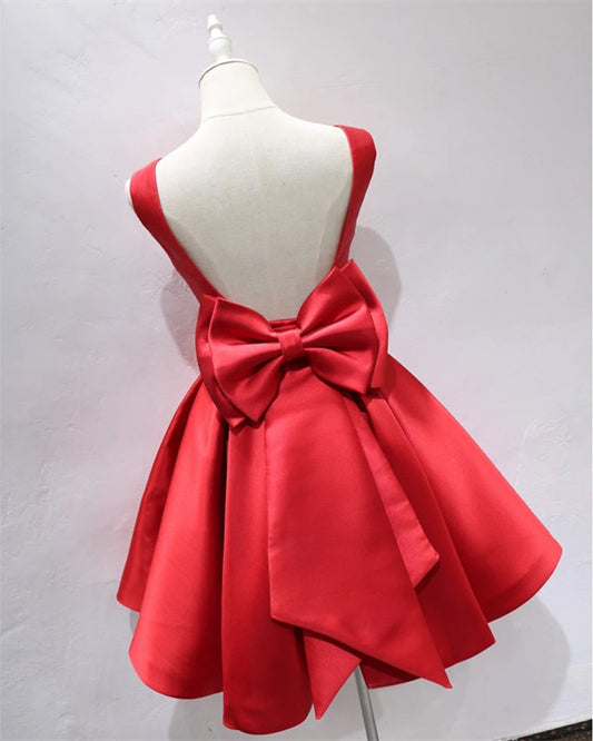 Cute Homecoming Dresses Satin Bow Back Spaghetti Straps