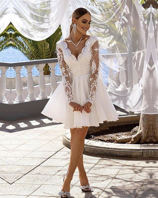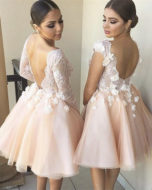 Tulle Homecoming Dresses Lace Long Sleeves V Neck