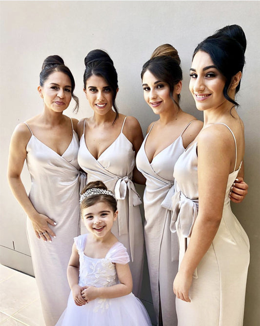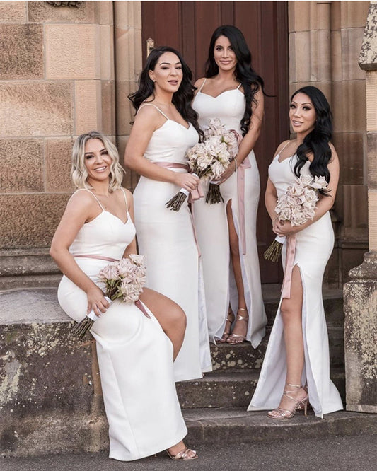 Satin Split Mermaid Bridesmaid Dresses With Sashes