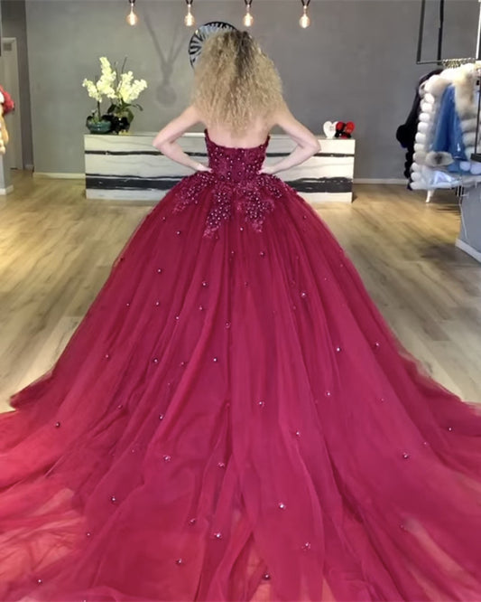 Tulle Ball Gown Sweetheart Dresses Flowers Beaded