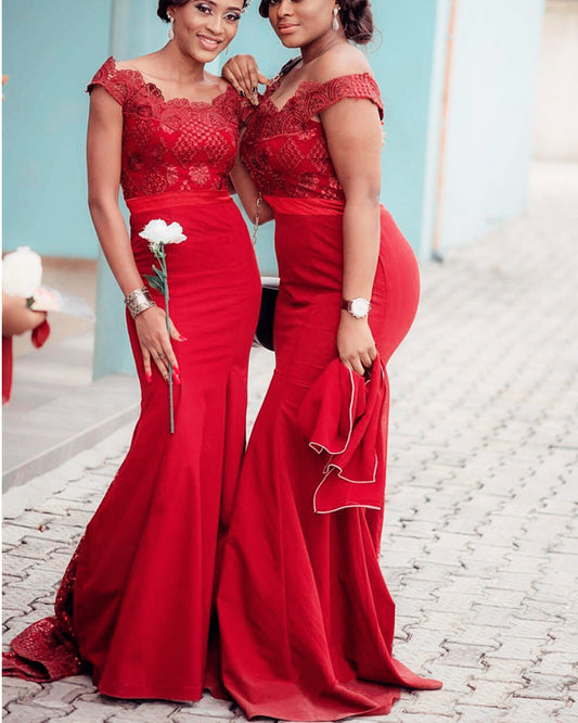 Mermaid Bridesmaid Dresses 3D Lace Flowers Off Shoulder