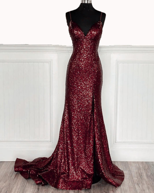 Mermaid Royal Blue Sequin Dresses V-neck Split