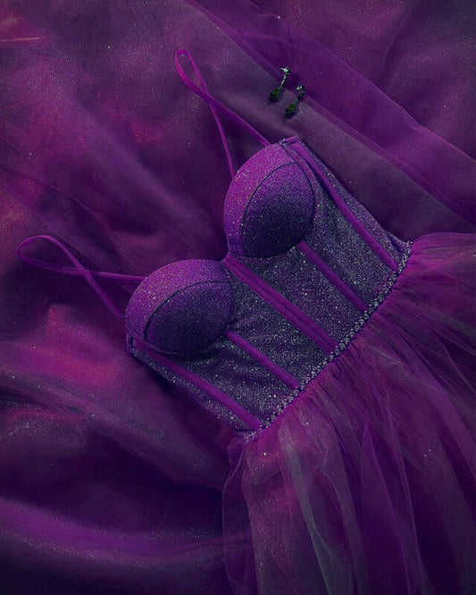 Champagne Sparkly Sweetheart Corset Tulle Dress