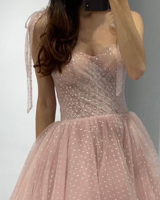 Pink Tulle Midi Corset Prom Dresses