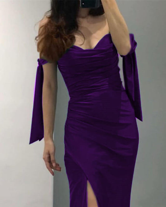 Long Green Chiffon Cold Shoulder Bridesmaid Dresses