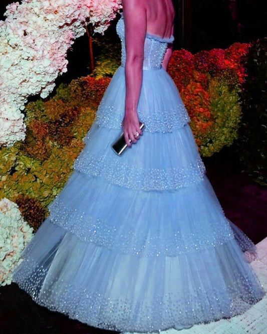 Beaded Sweetheart Corset Ruffles Prom Dresses
