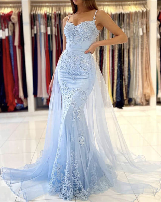 Mermaid Sage Green Lace Prom Dress Removable Train