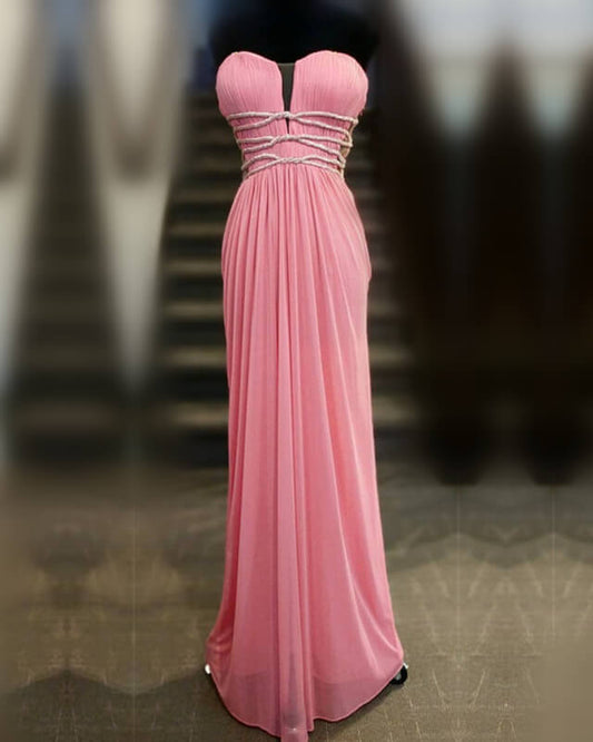 Long Mauve Pleated Chiffon Bridesmaid Dresses