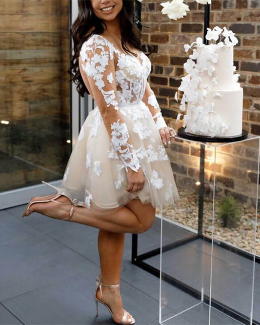 Ivory Tulle Homecoming Dresses Lace Long Sleeve
