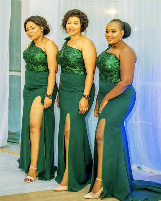 One Shoulder Split Mermaid Bridesmaid Dresses Sequins Pattern