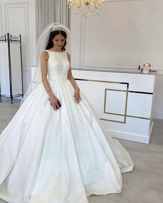 Princess Wedding Dress Satin Ball Gown Lace Embroidery