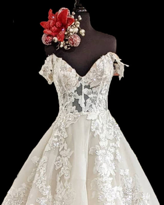 Mermaid Sparkly Long Sleeve Wedding Dress Off Shoulder