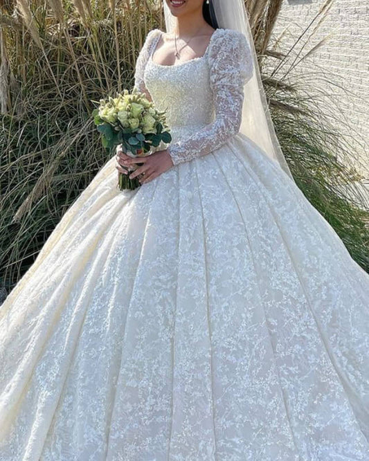Vintage Lace Wedding Ball Gown Long Sleeve Dress