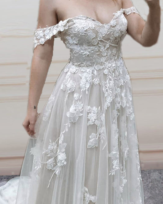 Boho Wedding Dress Tulle Skirt Lace Off The Shoulder