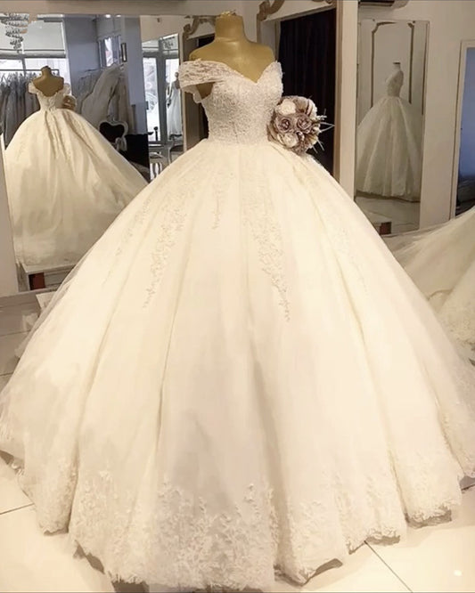 Ball Gown Off Shoulder Wedding Dress Lace Edge