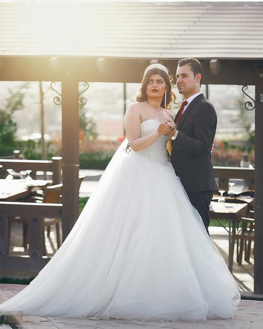 A-line /Princess Satin Wedding Dresses Strapless Pearl Corset