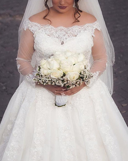 Off The Shoulder Wedding Dresses Long Sleeves Ball Gown