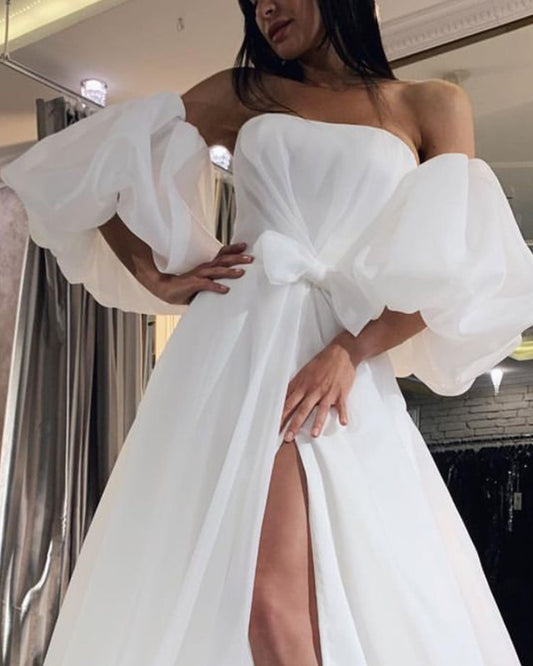 Tulle Boho Wedding Dresses Puffy Sleeves