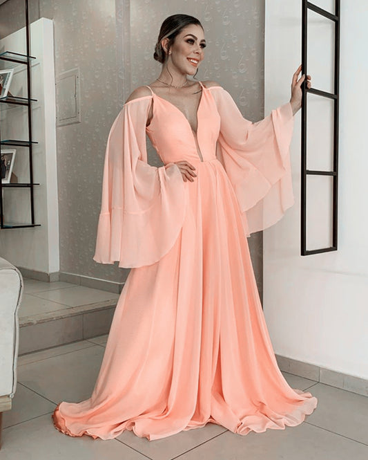 Cold Sleeves Prom Dresses Chiffon Backless