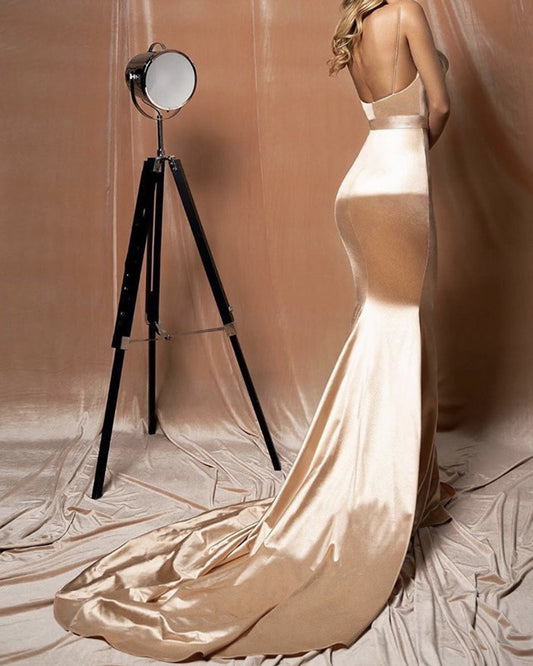 Spaghetti Straps Satin Mermaid Prom Dresses