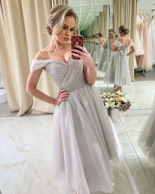 Tulle Pleated Off The Shoulder Ankle Length Dresses