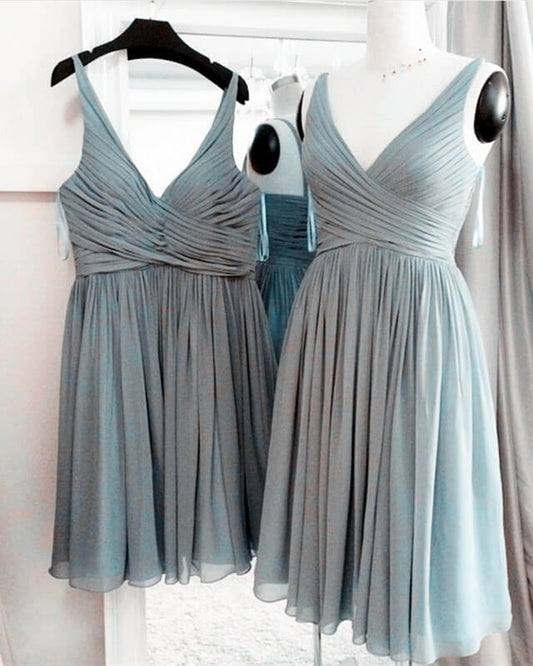 Short Pleated V-neck Chiffon Bridesmaid Dresses