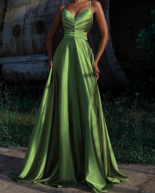 Mermaid Satin V Neck Spaghetti Straps Split Dress