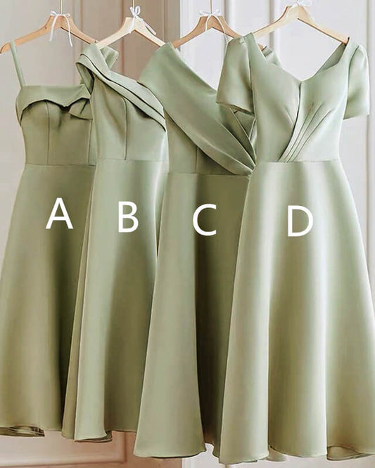 Short Sage Satin Bridesmaid Dresses Mismatched