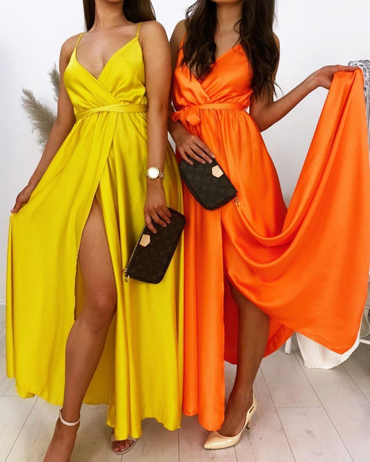 Long Sage Satin Cowl Neck Bridesmaid Dress