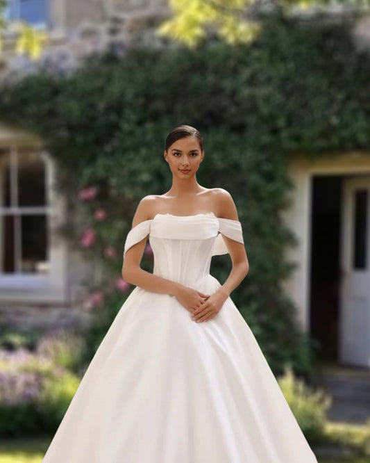 Audrey | Simple Satin Off Shoulder Wedding Dress
