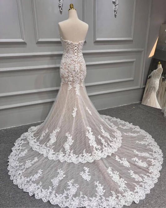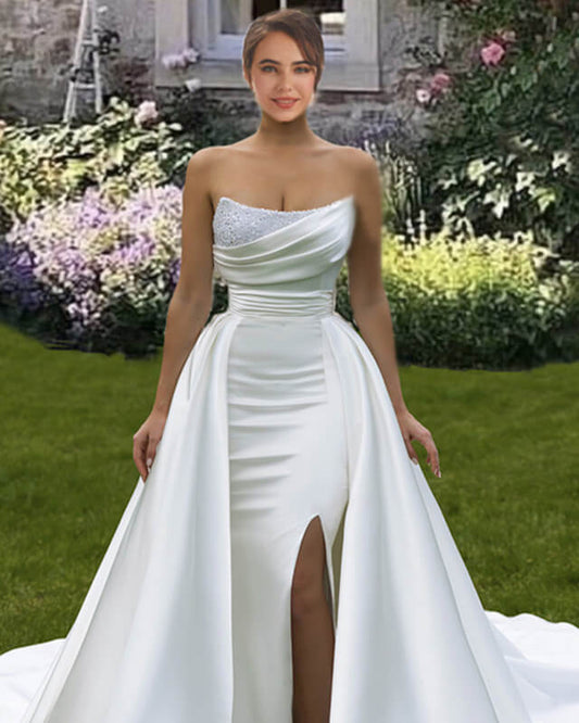 Mermaid Strapless Satin Wedding Dress With Sleeves