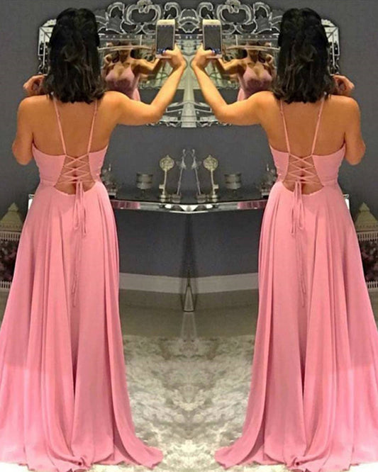Dusty Rose Chiffon V Neck Split Bridesmaid Dresses